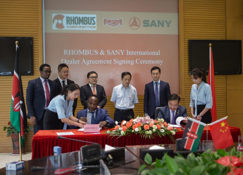 Recently, SANY signed concrete machinery and dump trucks dealer-ship agreement with Rhombus, the powerful ready-mix and bulk cement supplier in Kenya. Rhombus is expected to sell 650 dump trucks and 200 concrete machines in Kenya in the coming three years, which will make SANY’s concrete machinery rank No.1 and dump trucks list No.2 in the local market.